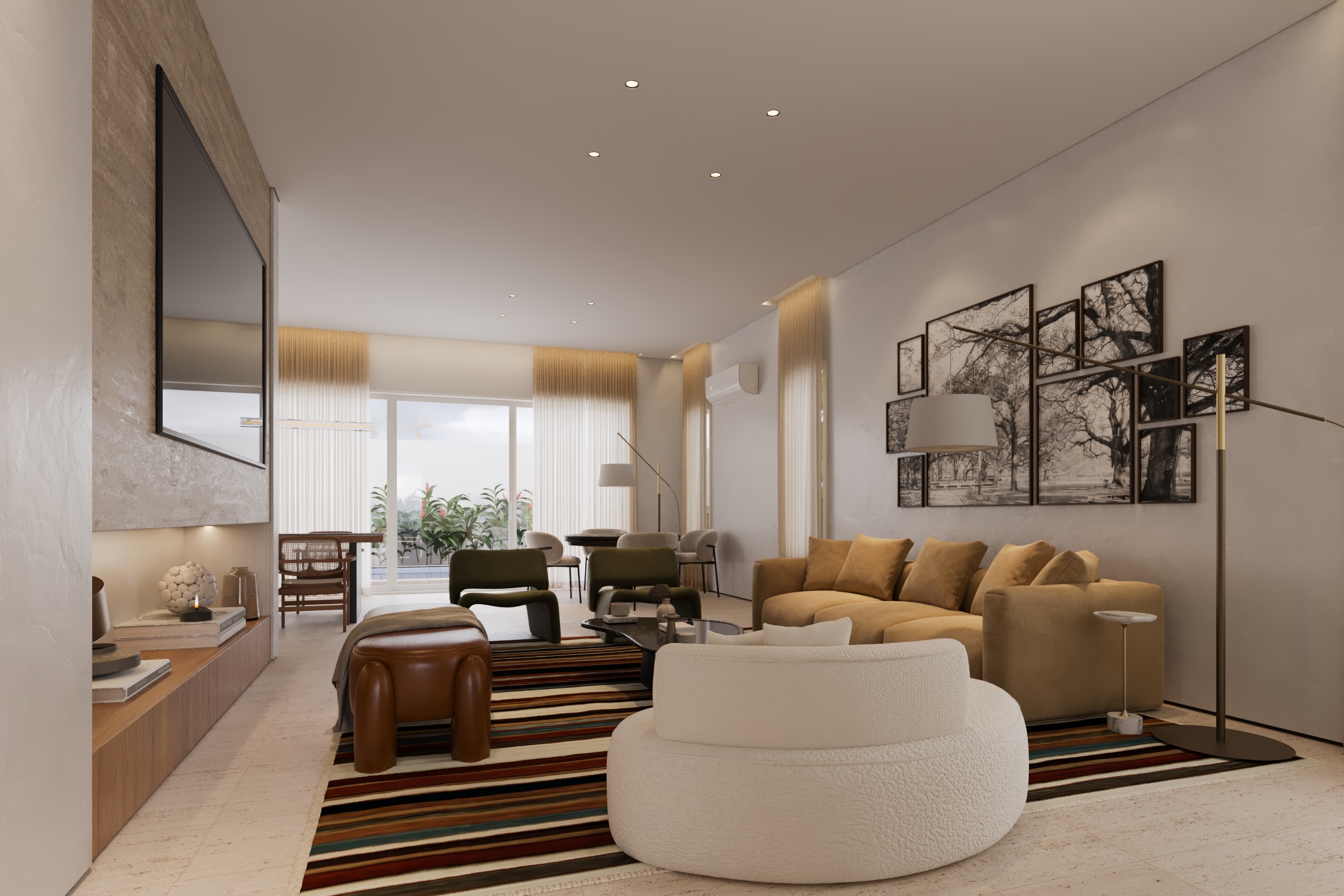 Externamente, a arquitetura mantém linhas clássicas e atemporais, enquanto o interior revela o conceito do quiet luxury: ambientes em tons claros e naturais, que permitem que cada cliente personalize os espaços de acordo com seu estilo de vida.